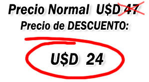 Este curso curso tiene un precio normal de 47 dólares, pero como te dije que te vamos a dar un descuento especial vamos a dejar este entrenamiento completo a MITAD DE PRECIO, es decir lo dejaremos a SÓLO 24 DÓLARES.